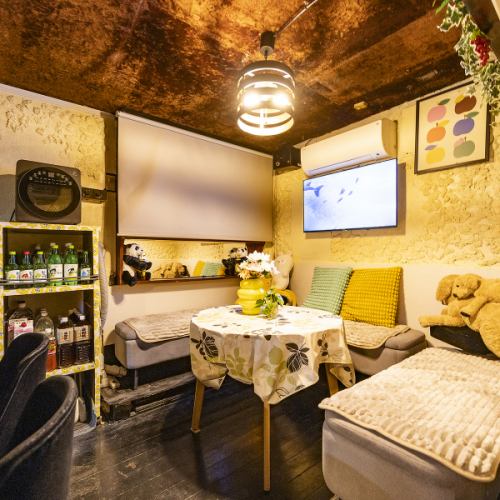 ゆったりとくつろげるソファー席をご用意しております!かわいいぬいぐるみもお席のアクセントに♪ゆったりくつろぎながら、カラオケ、お酒、料理をお楽しみいただけます◎韓国グループが好きな人同士が集まって、新たな出会いの場としてもおすすめです◎